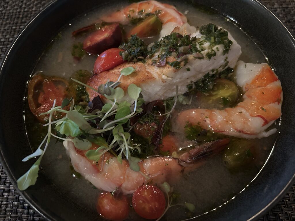 Charbroiled halibut with smoked olive oil poached shrimp at Brandywine Prime. (Photo/Jordan Wright)